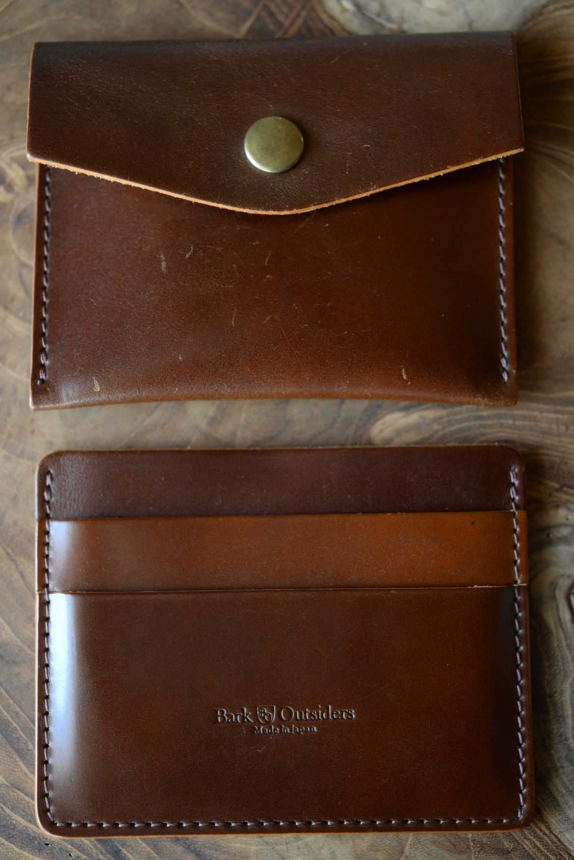 オーセンティックトラッドのテイストを凝縮してBarkoutsidersならではのエイジングを意識したプロダクトになっているのですが、特記すべきはコインケースとカードケースを別々のアイテムとして販売している点です。