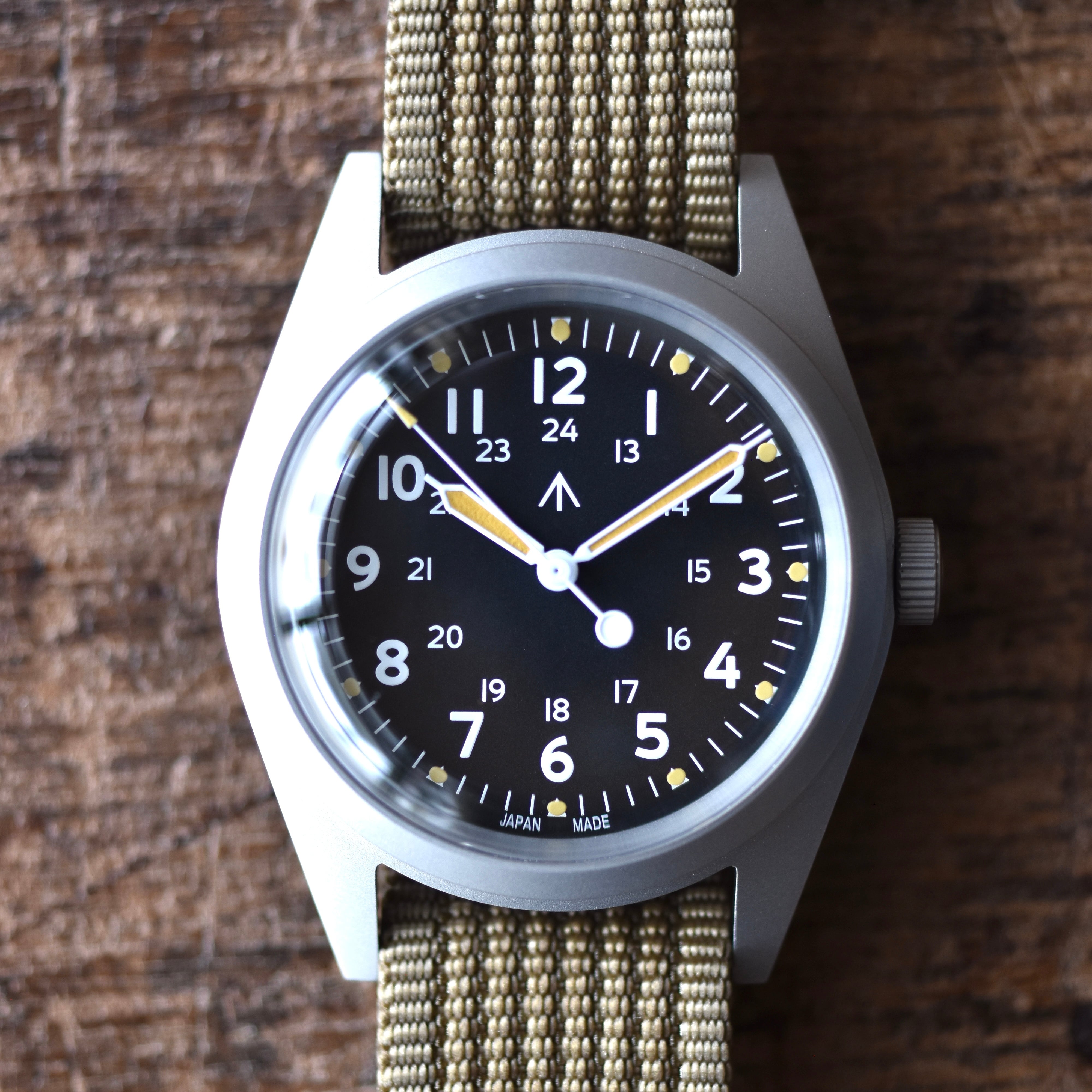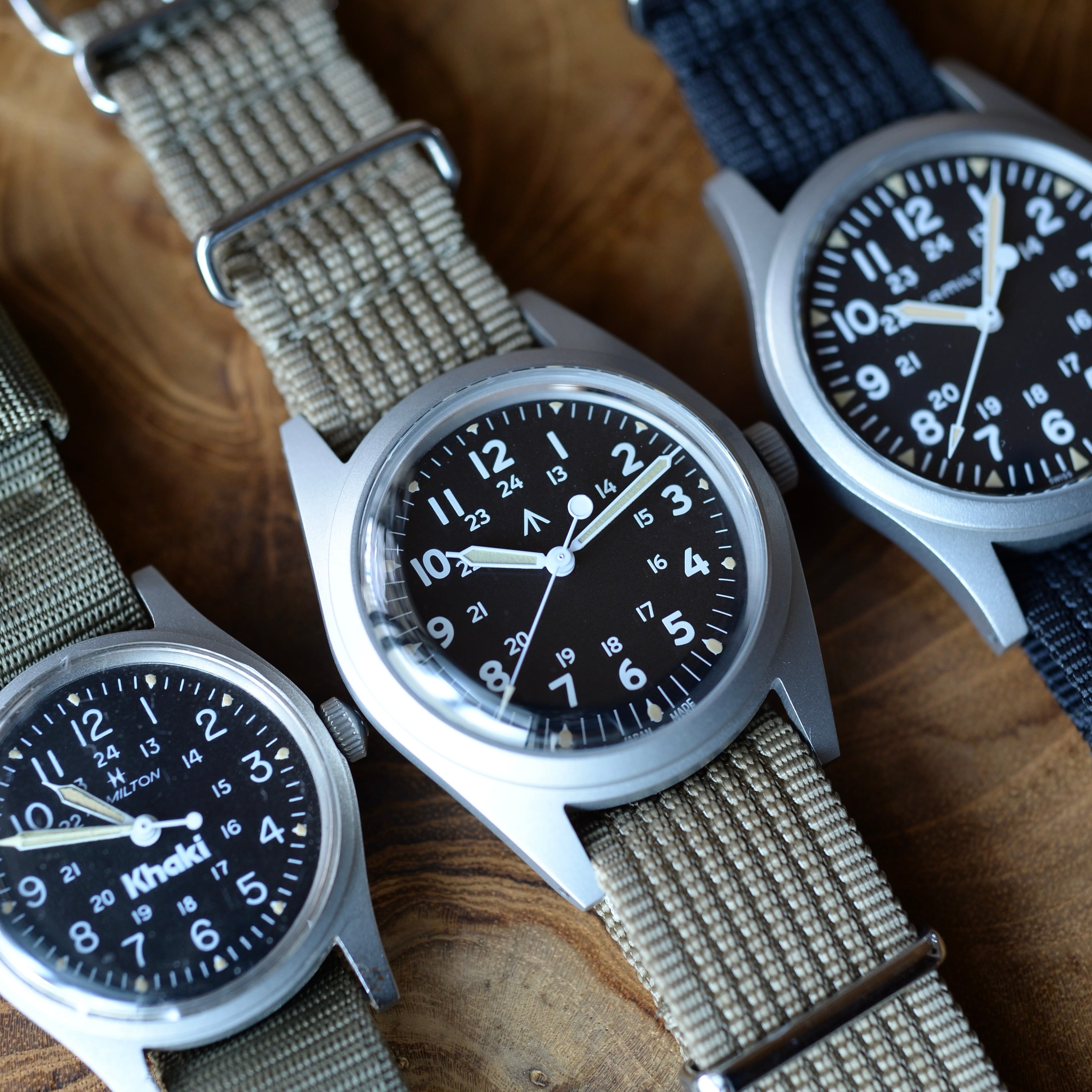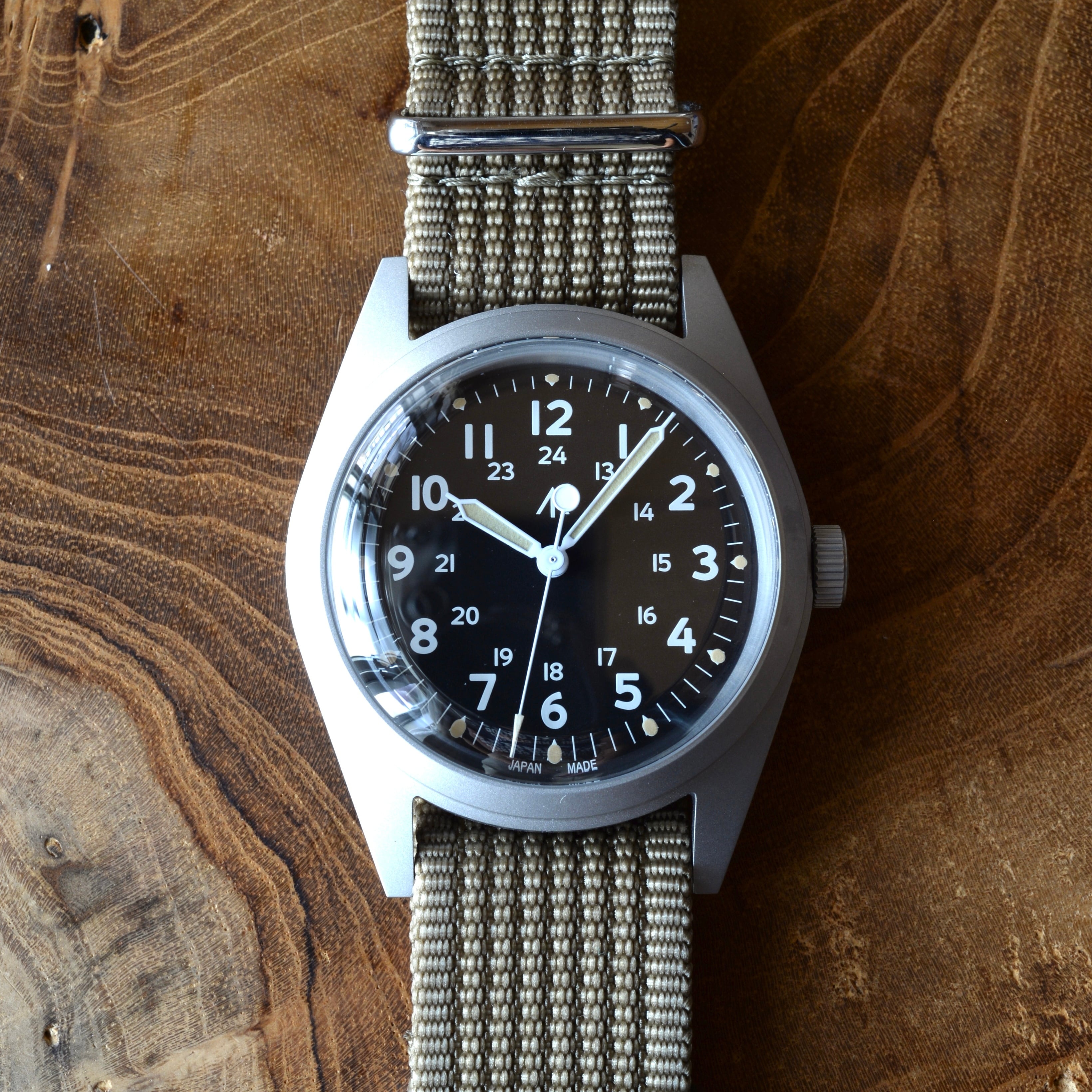 1960代後半から70年代中頃までベトナム戦の時代にアメリカで各社時計メーカーが米軍から要請を受けて納品していたGG-W-113をベースにしています。