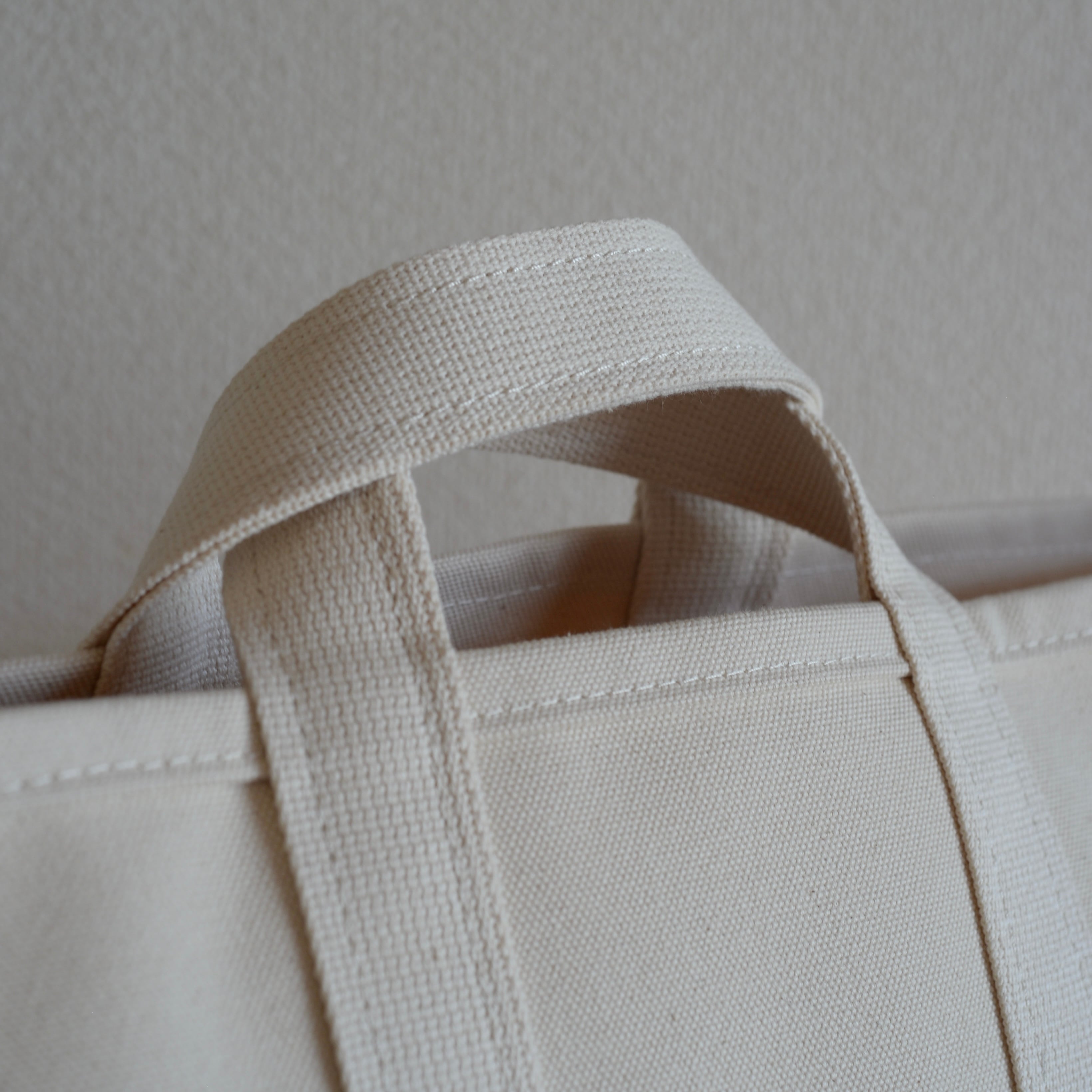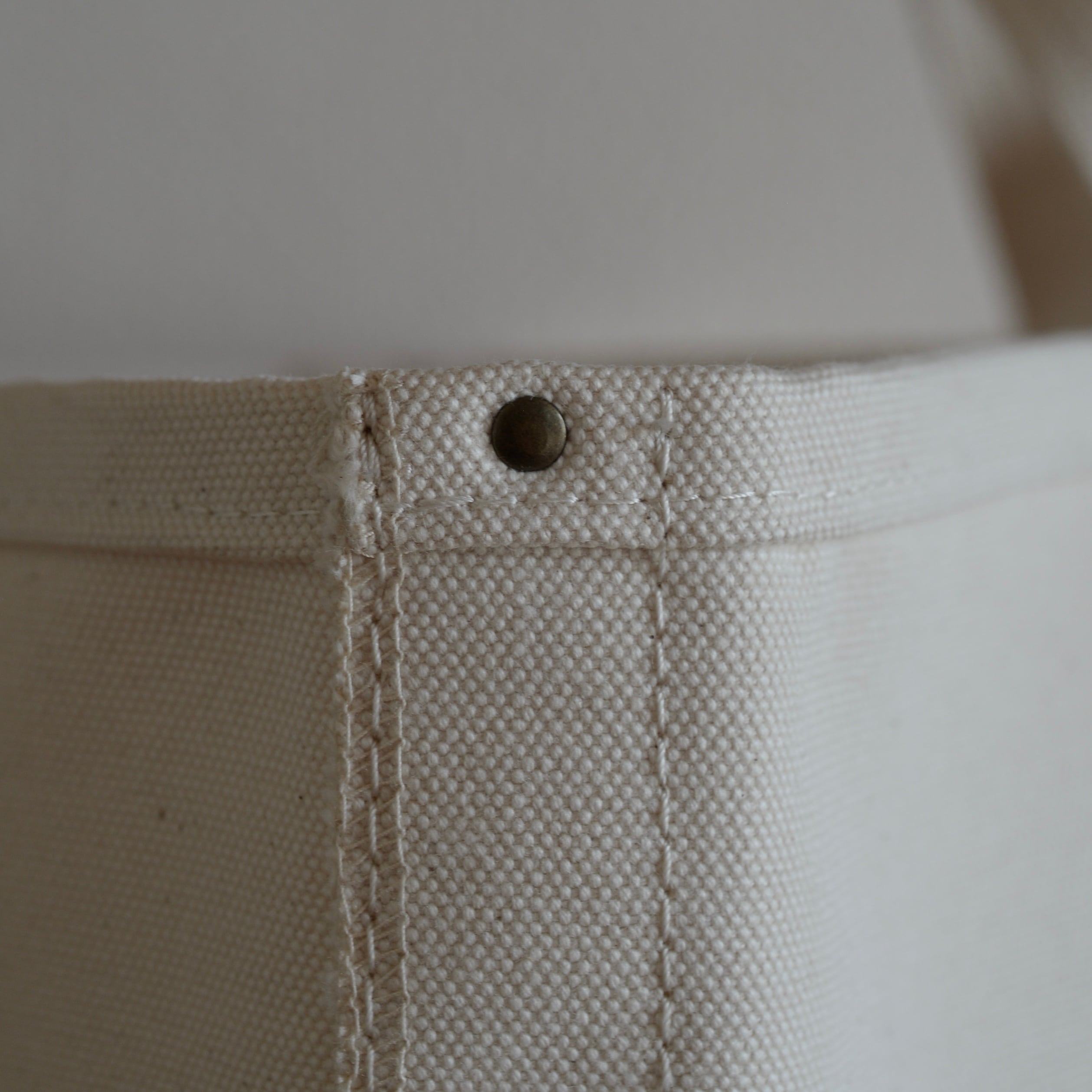 生地には、太番手の糸で織られた生成りキャンバスを採用。