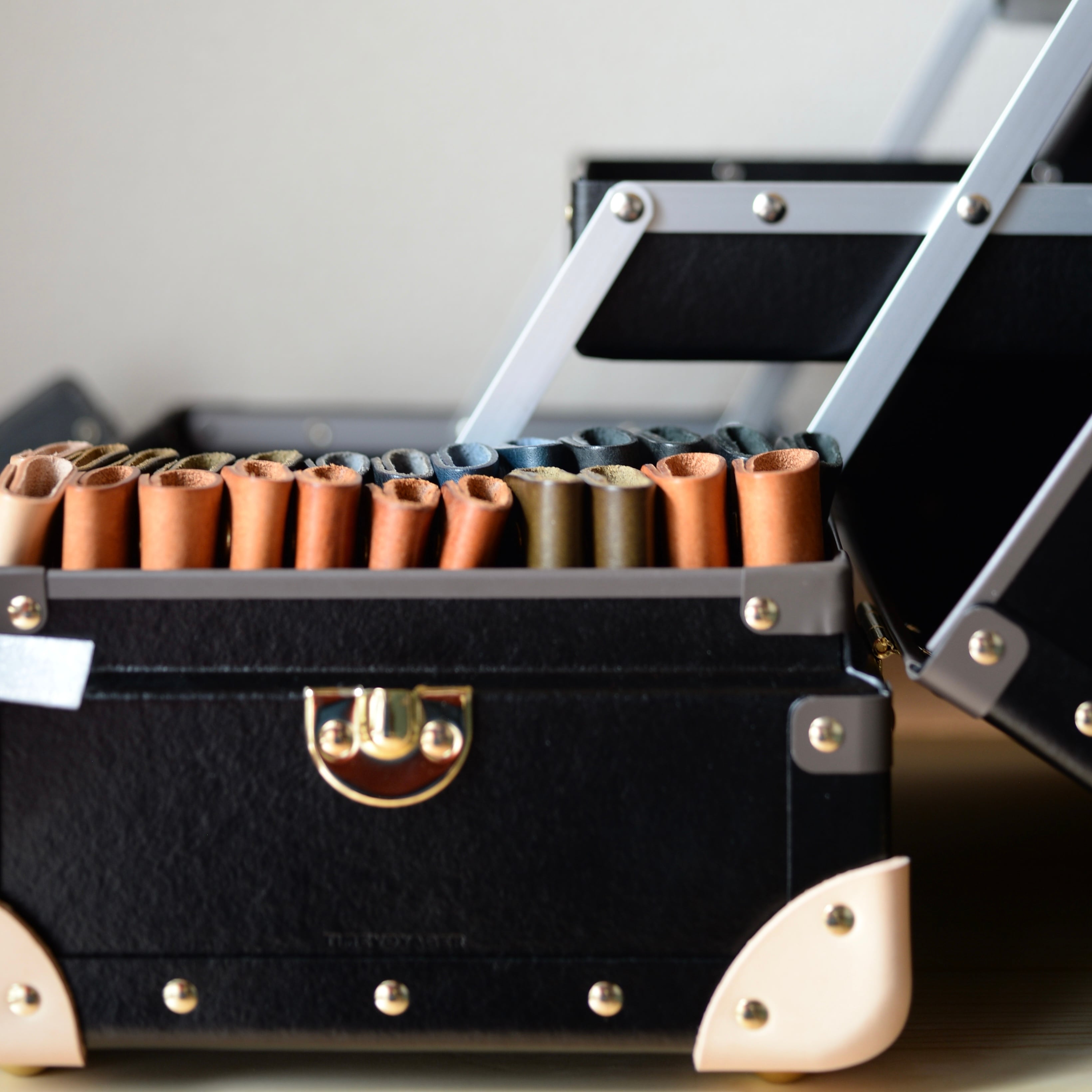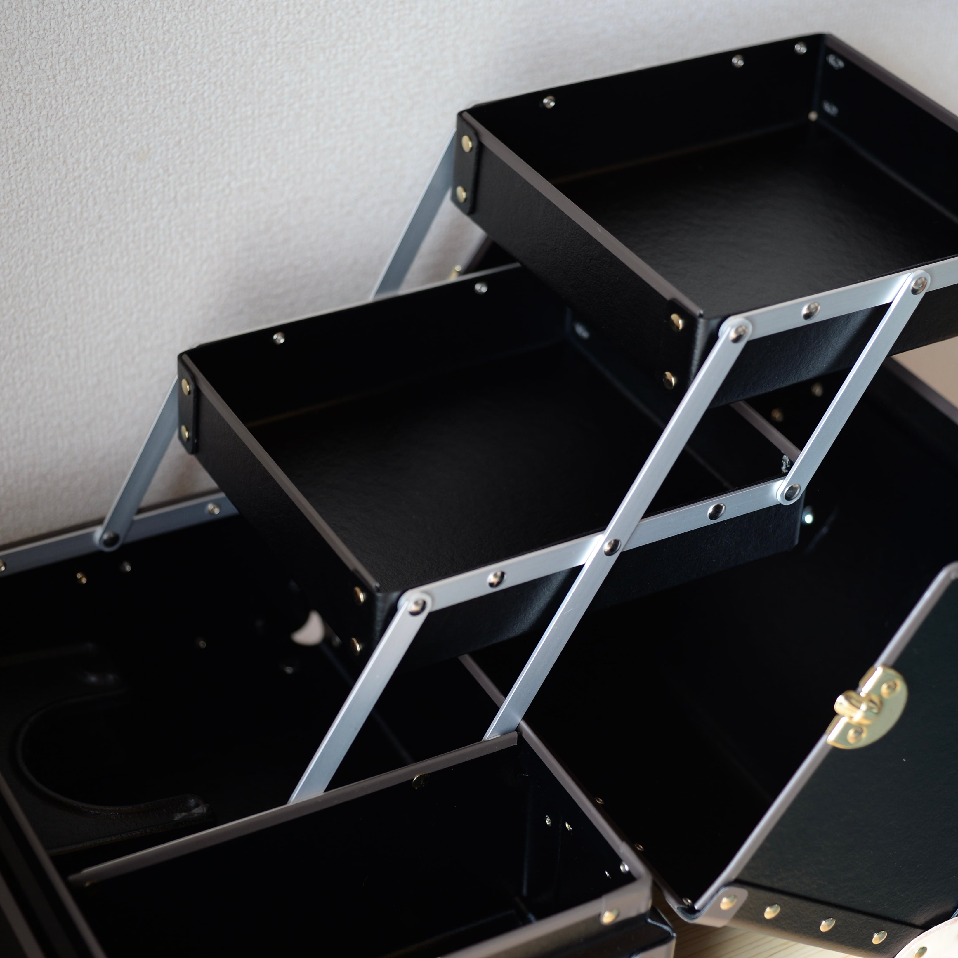 内装は二段式のトレー構造で、腕時計のヘッドやストラップ、メンテナンスツールなどの細かなアイテムを整理しやすい設計。