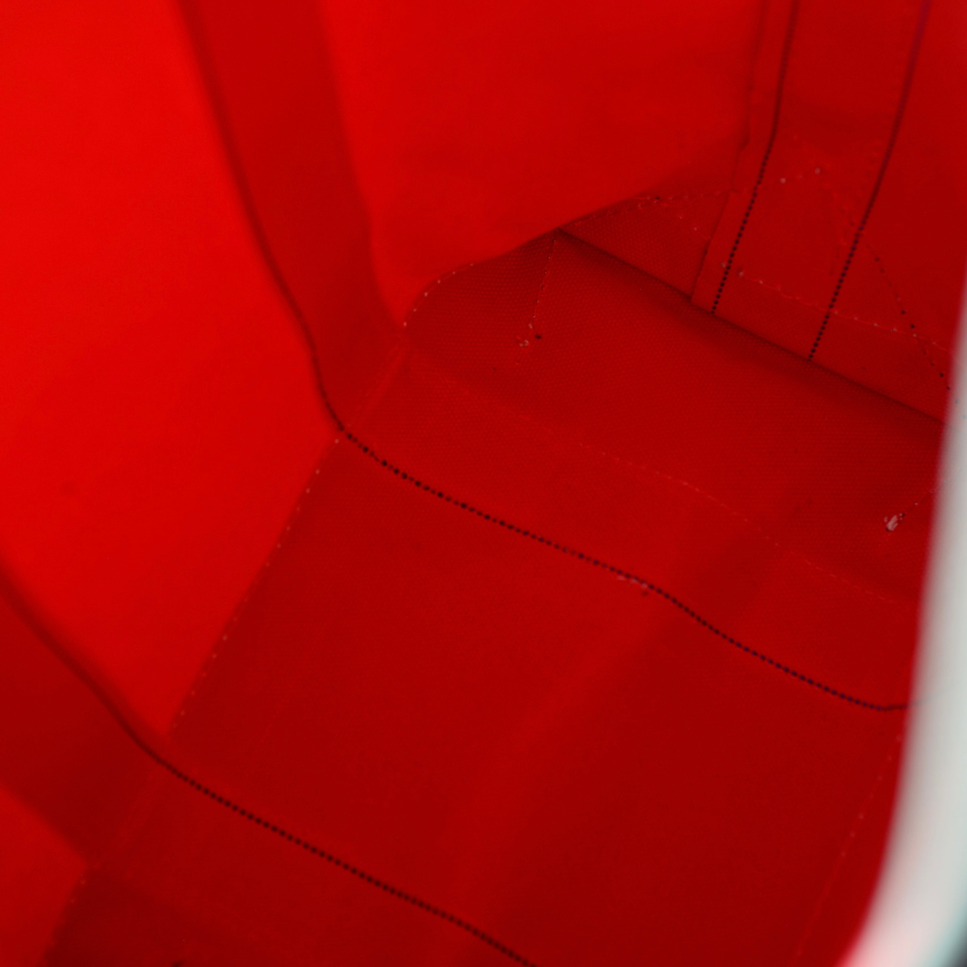引き続き日本で一台の耳付きシャトル織で織られた別注ブルーラインキャンバス生地に厚みを出し、白のコットンテープを挟み込んだ忠実なな仕上がりのデラックストートになっています。